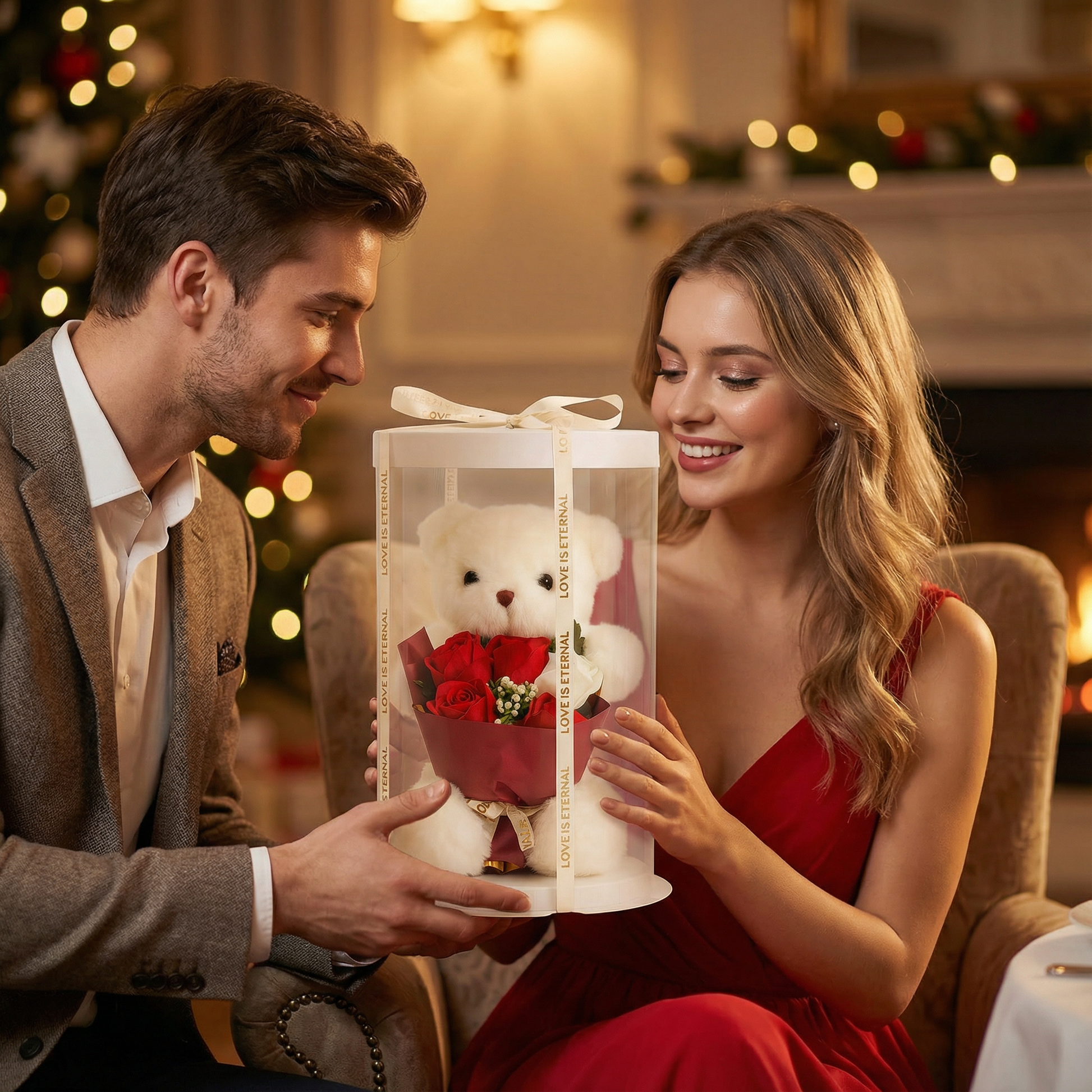 Całość została zapakowana w ekskluzywne, przezroczyste pudełko z ozdobną wstążką, dzięki czemu prezent jest od razu gotowy do wręczenia i idealny na każdą wyjątkową okazję